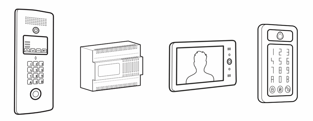 – Centrale d’accès avec alimentation, système de vérification des accès et module de communication